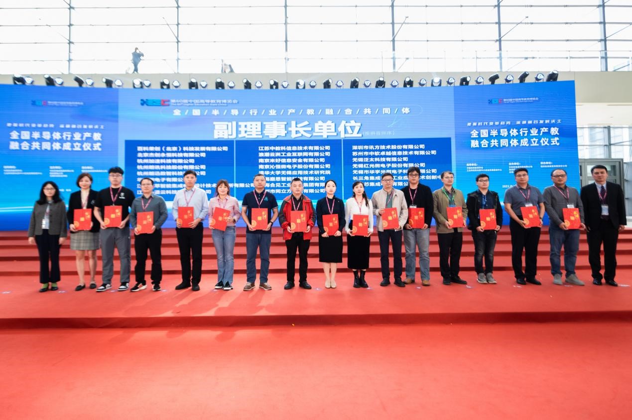 10月12日,作為第60屆中國高等教育博覽會內容之一,全國半導體行業產教融合共同體成立儀式在青島舉行。本次大會由中國高等教育學會、工業和信息化部中小企業發展促進中心指導,中科芯集成電路有限公司、南京郵電大學、無錫科技職業學院聯合主持。教育部職業教育與成人教育司副司長林宇,中國高等教育學會副會長葛道凱等領導發表致辭,來至全國各地200多名院校領導和企業代表參加會議,從產業交流、技術討論、人才培養、供需對接等方面探討半導體行業創新人才的培養體系構建。